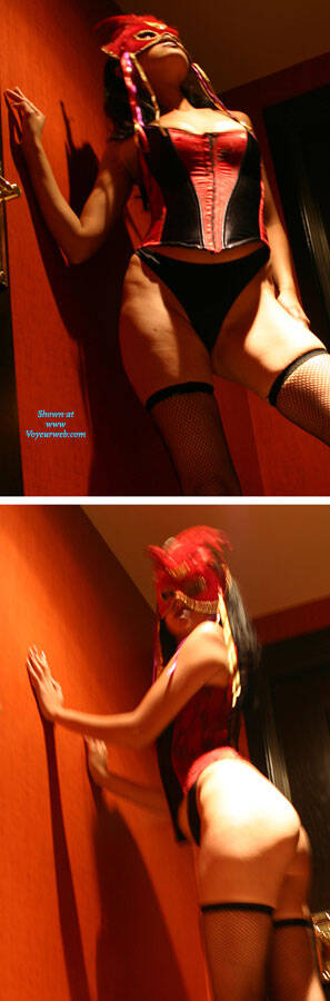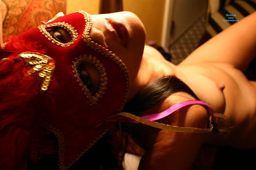 Getting ready for the New Year's Eve costume party she tried on her mask and wanted me to see what was waiting in the New Year!