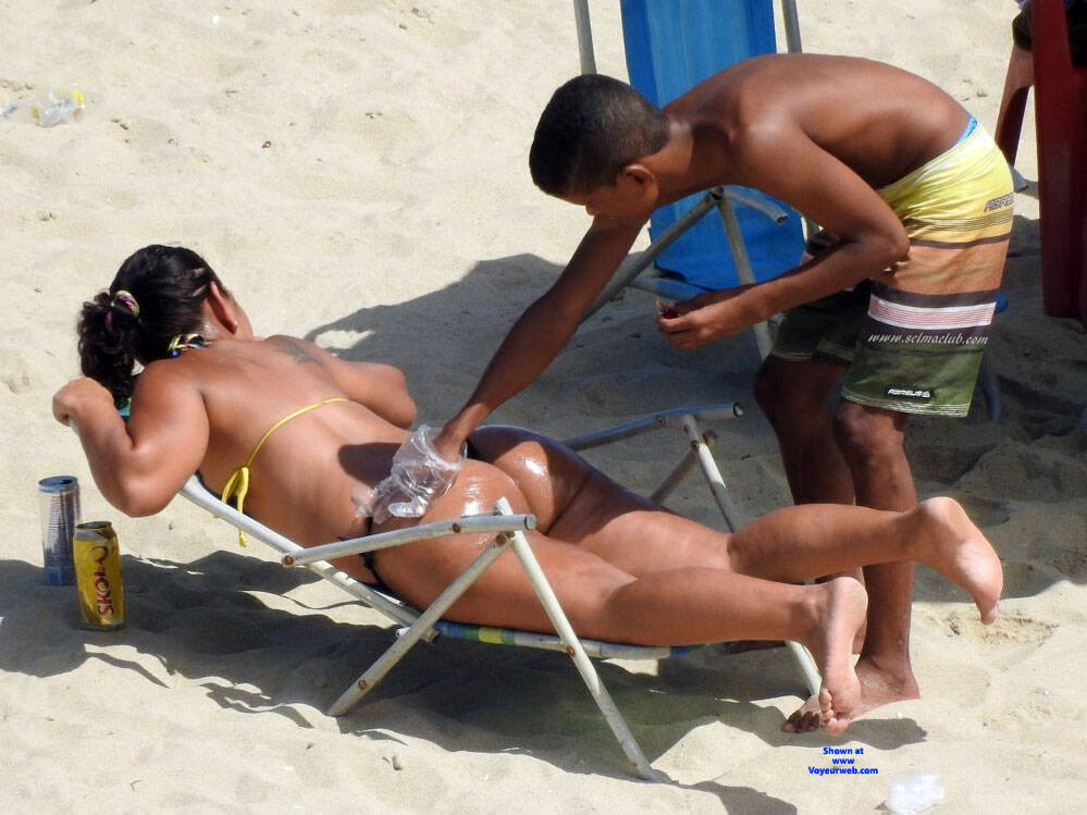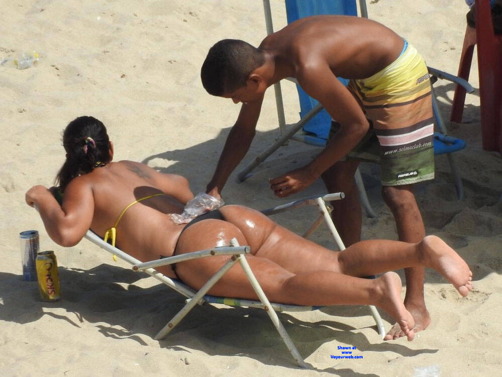 Passando bronzeador na bunda gostosa.