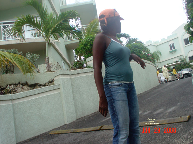 I believe she was a maid at the resort leaving for the day. Her top was very see thru and puffy nipples